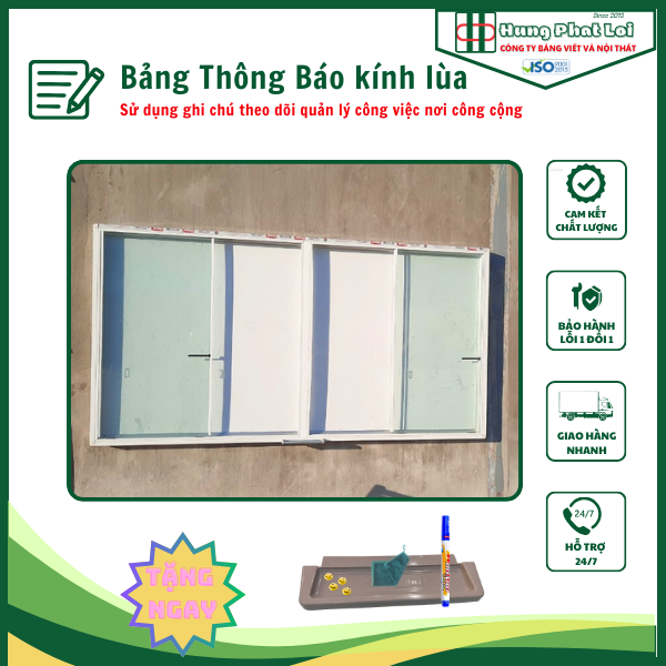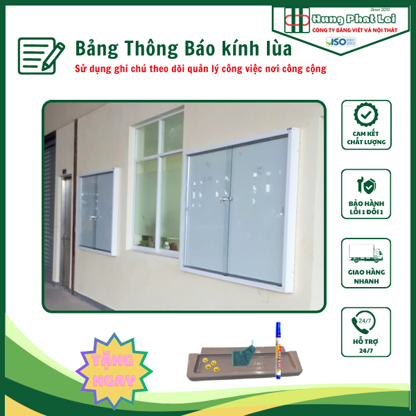 Bảng thông báo kính lùa do Công ty Bảng & Nội thất Hưng Phát Lợi sản xuất được thiết kế chắc chắn, tiện dụng và phù hợp với nhiều không gian khác nhau.