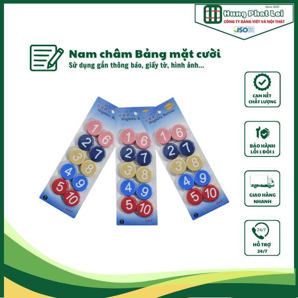 Nam châm hình mặt cười dùng để giữ giấy trên bề mặt bảng từ. Đường kính 30mm